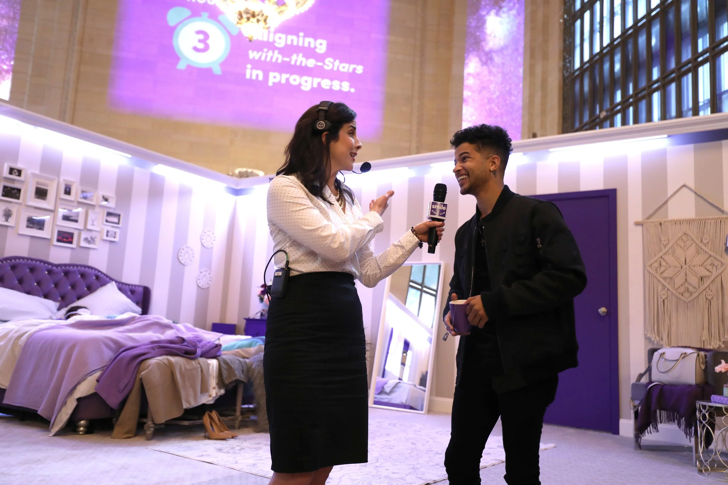 We used top-of-the-line projectors to be able to transform the ceiling into a night sky, and even an animated dream sequence - as well as a 10-hour countdown clock on the back wall, and informative visuals on the side walls. Broadway star, Jordan Fisher, helped out by singing her a lullaby. We enlisted Noise Control Officer’s to help with crowd noise. She even tried counting sheep. The famous Gay Men's Chorus in NYC helped act as her alarm clock and wrap up the performance.